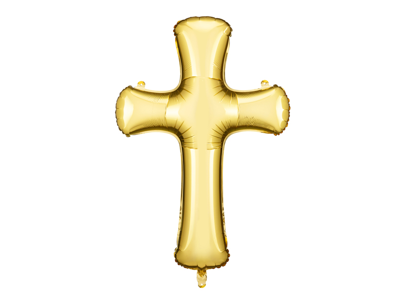 Elegantný fóliový balón v tvare kríža v zlatej farbe. Ideálny doplnok na výzdobu pri svätom prijímaní, birmovke, krste alebo cirkevnej oslave. Jednoducho sa nafukuje vzduchom alebo héliom.